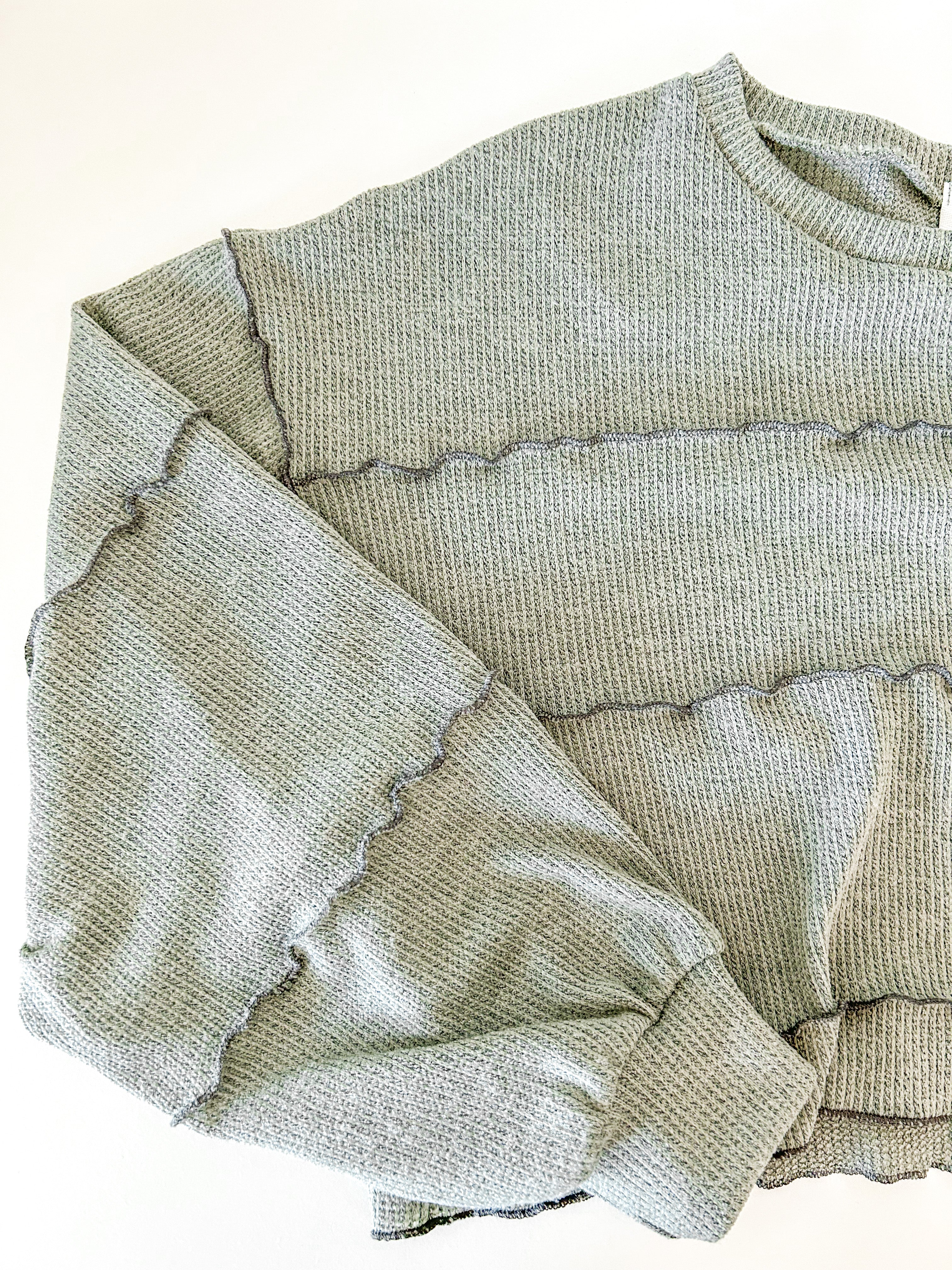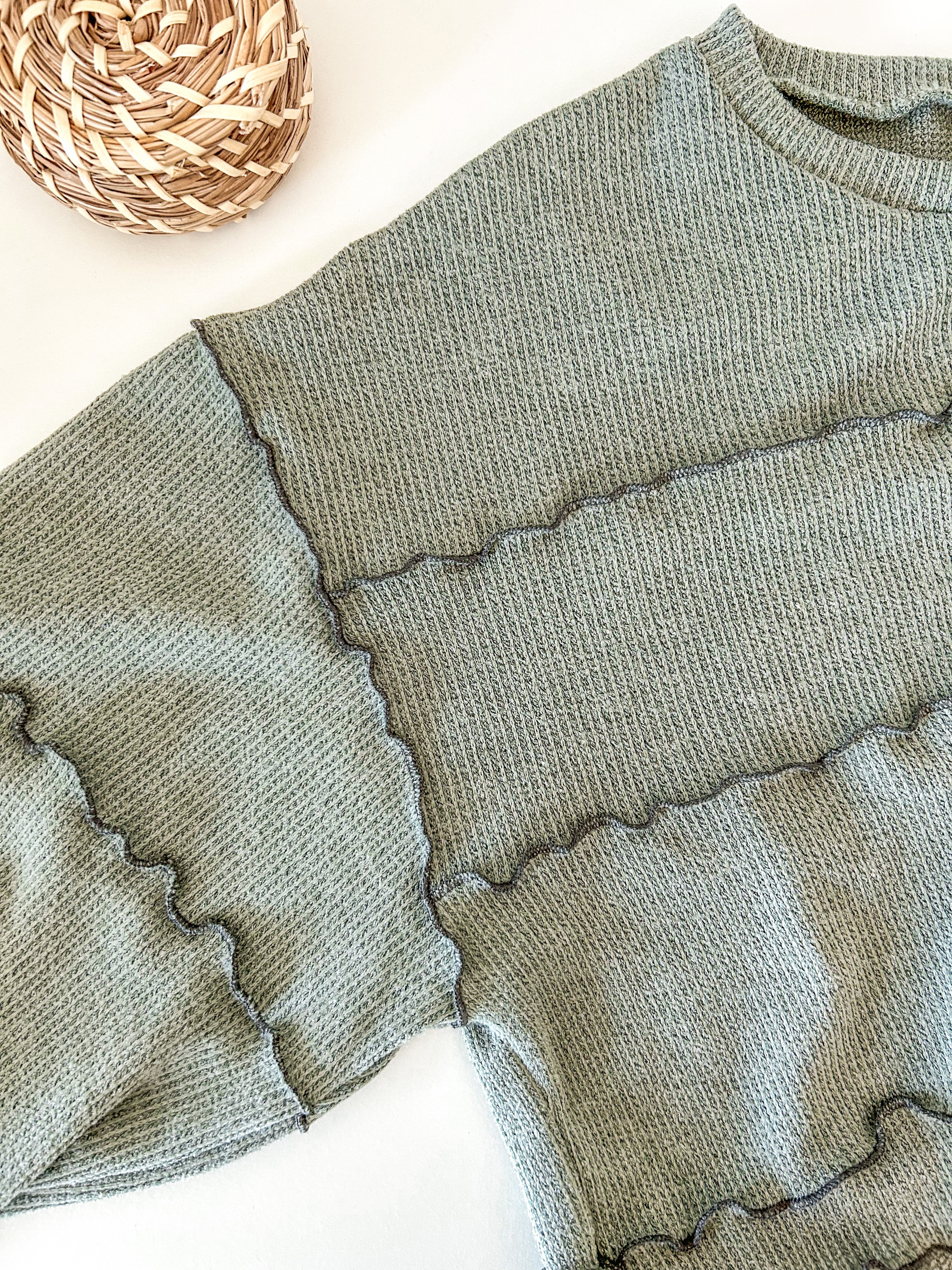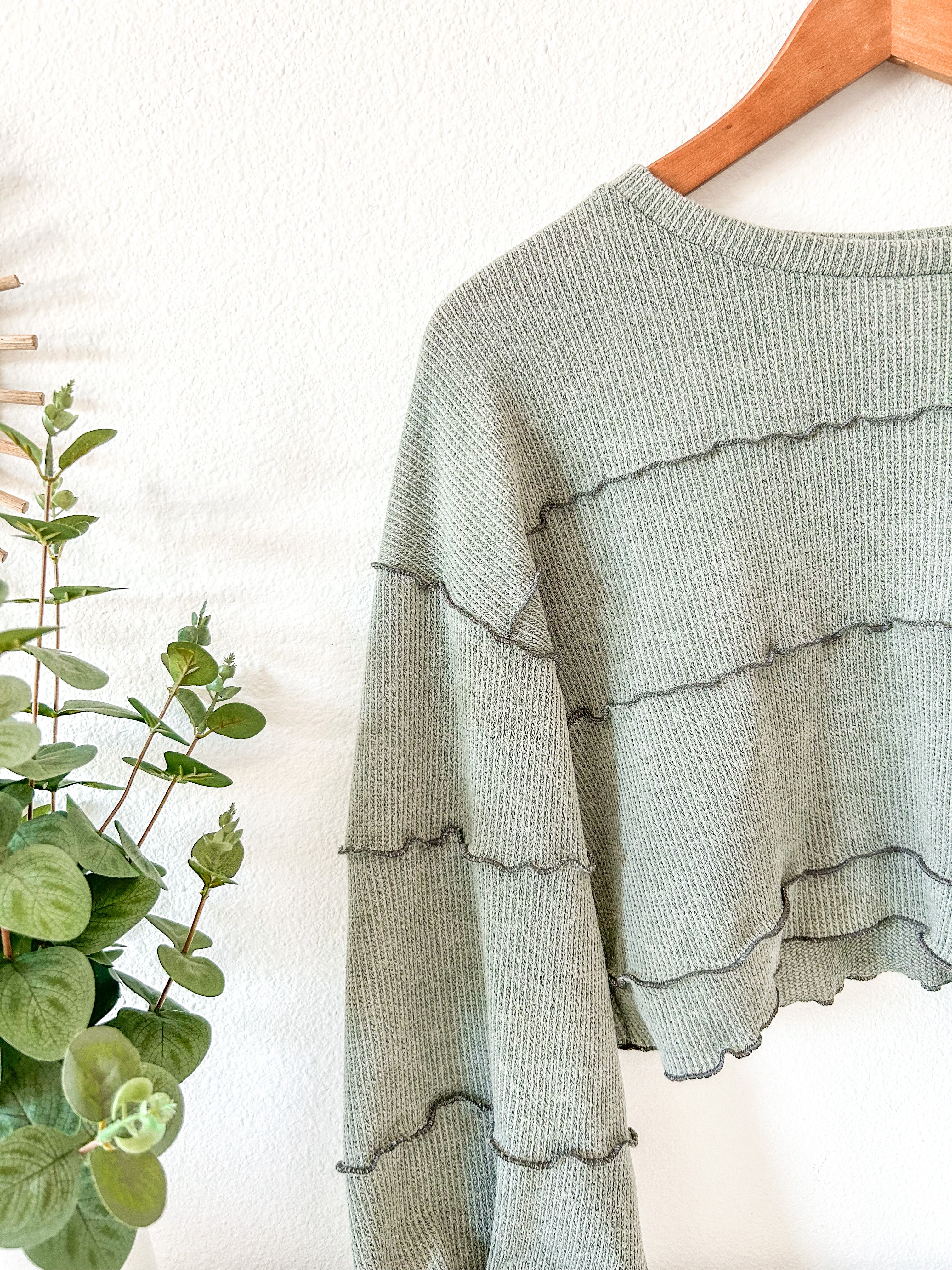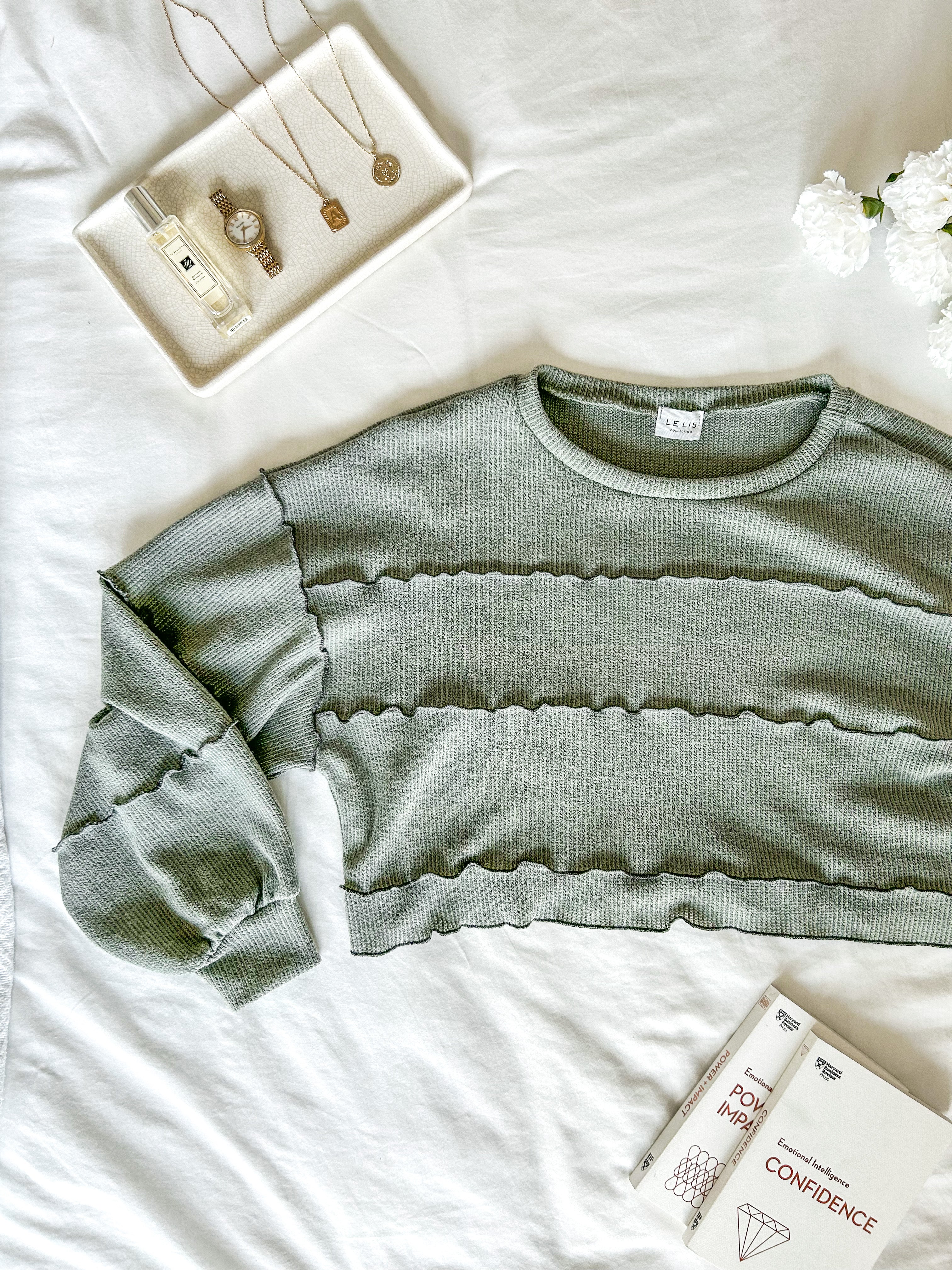 Long-sleeve swiggle texturedetail sweater. True to size!