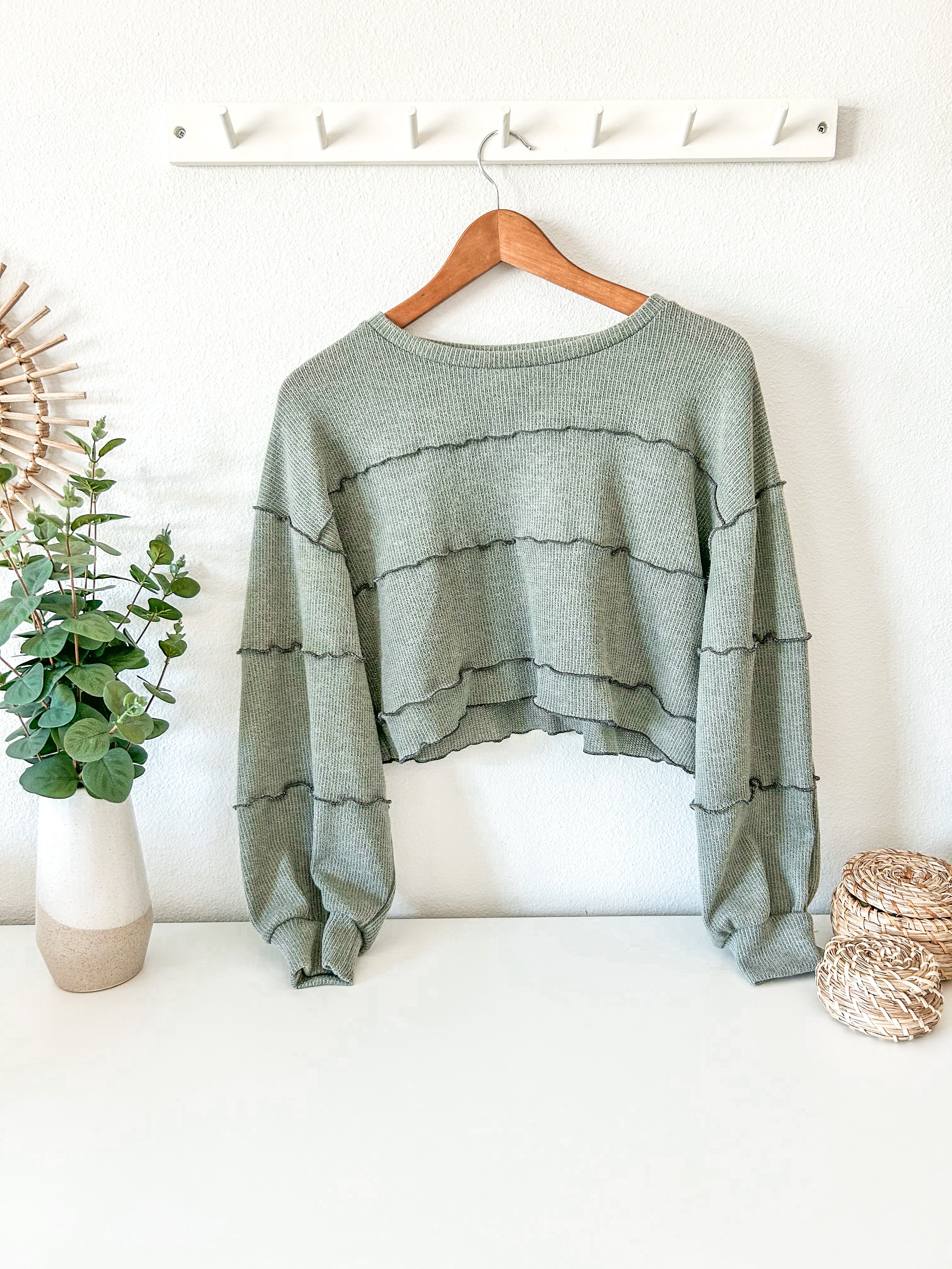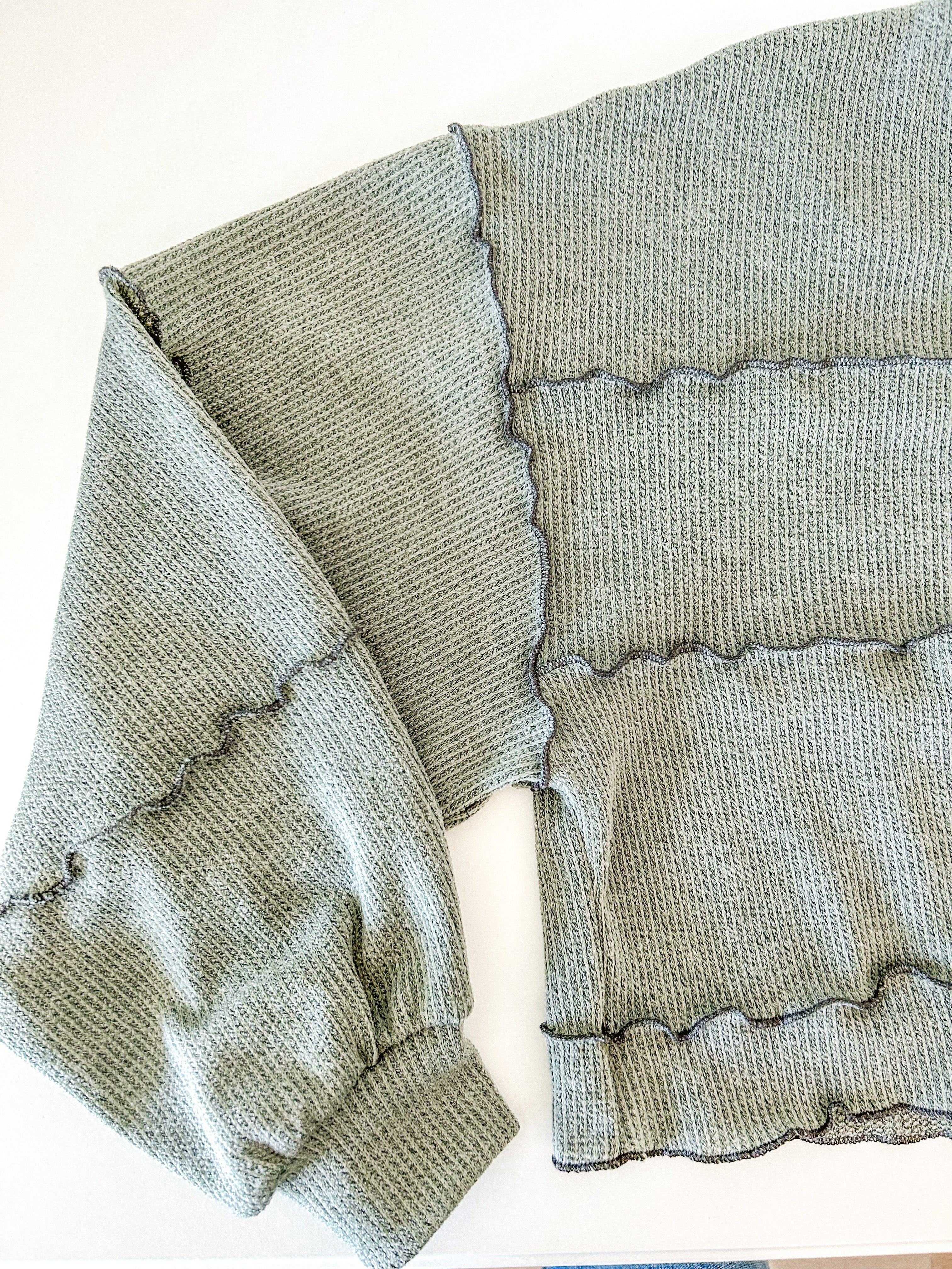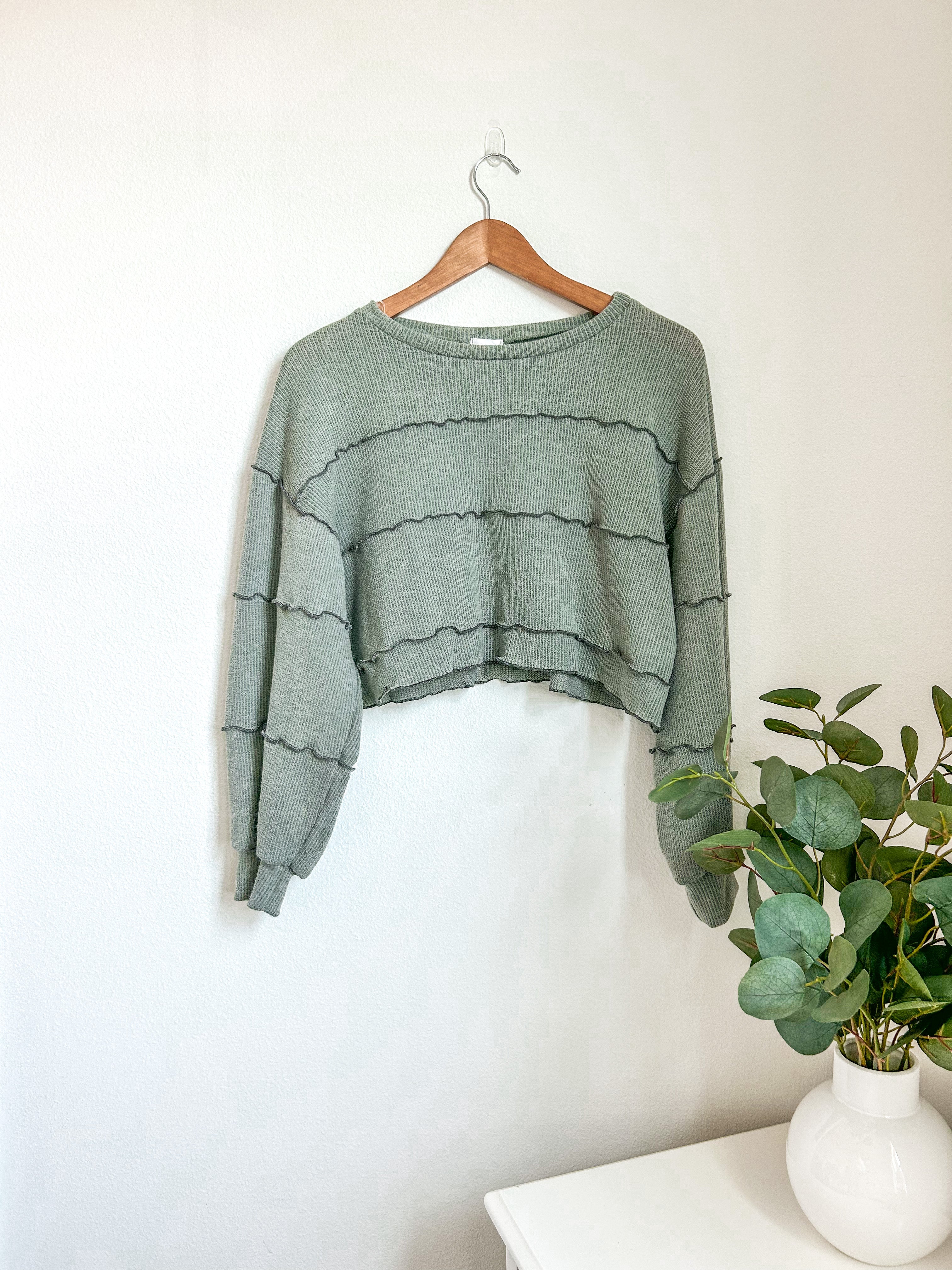 Long-sleeve swiggle texturedetail sweater. True to size!