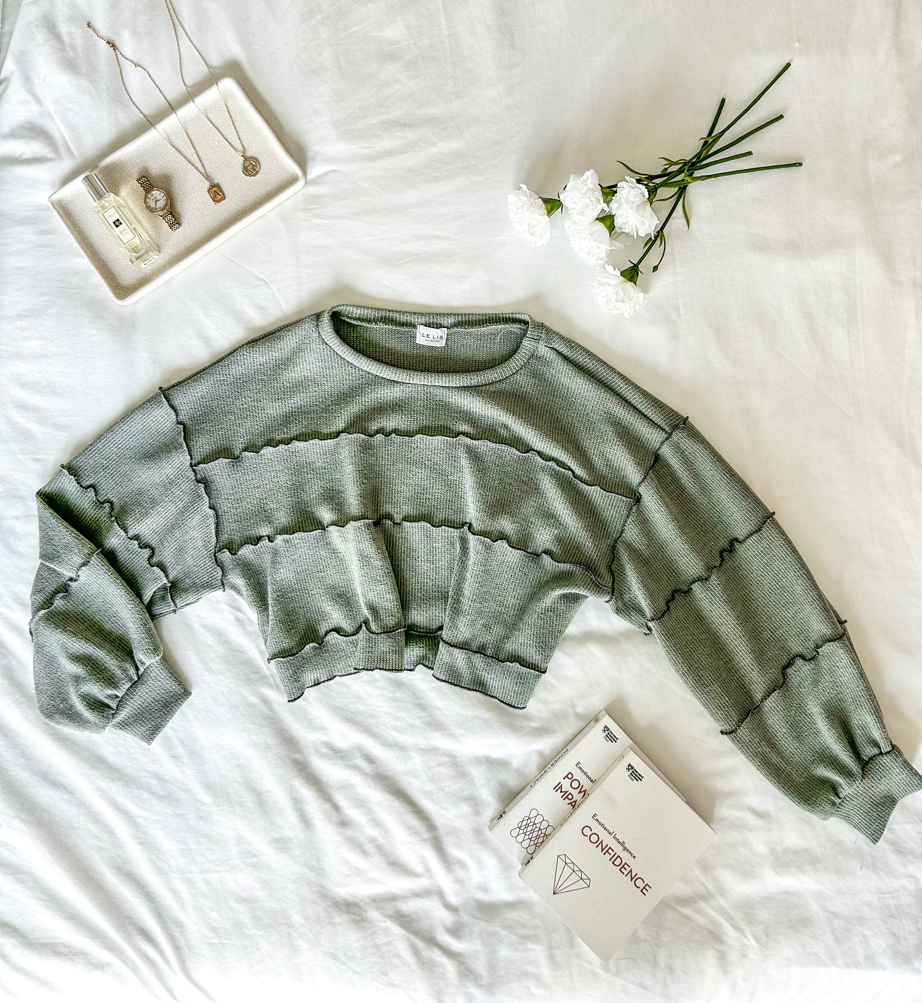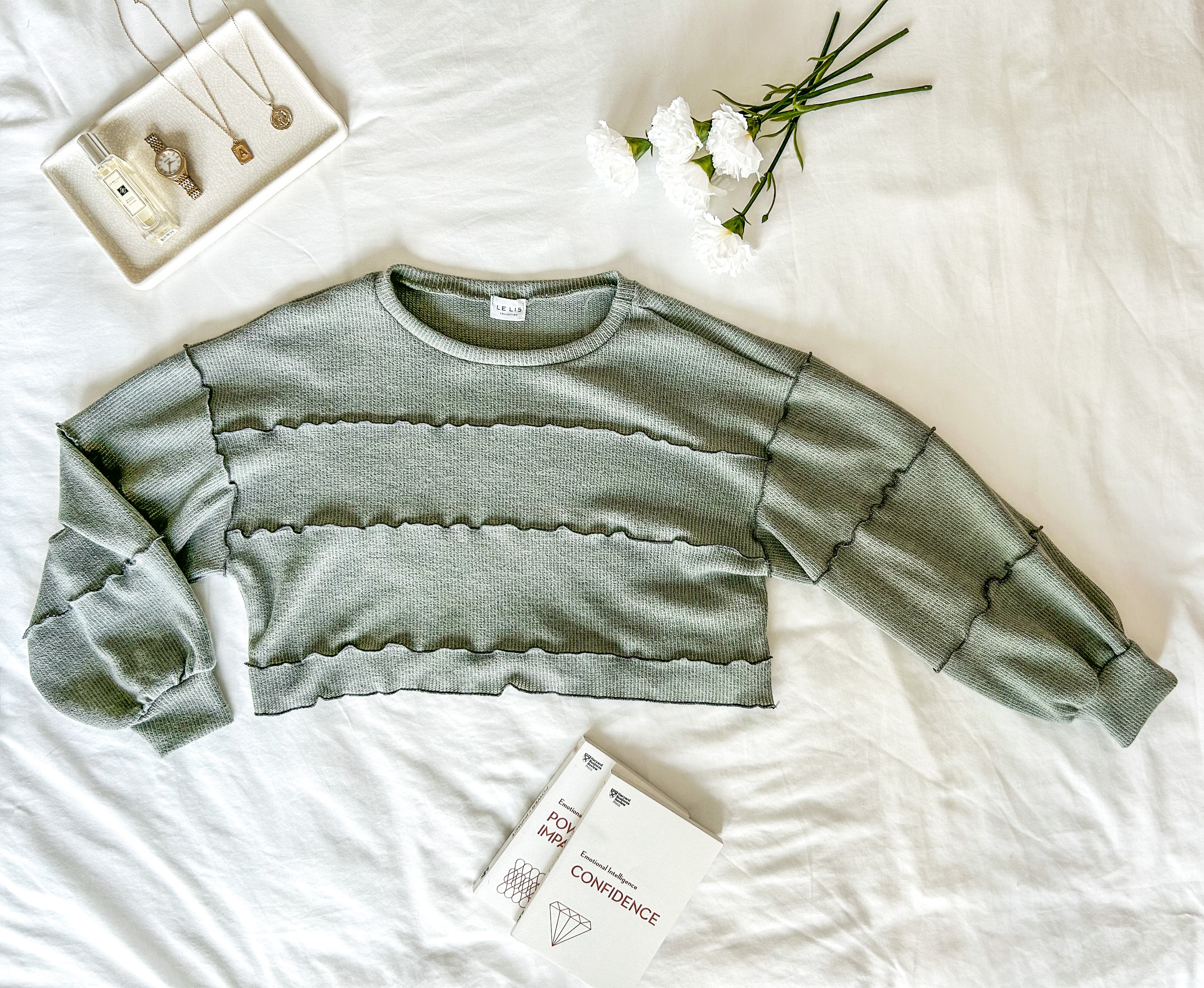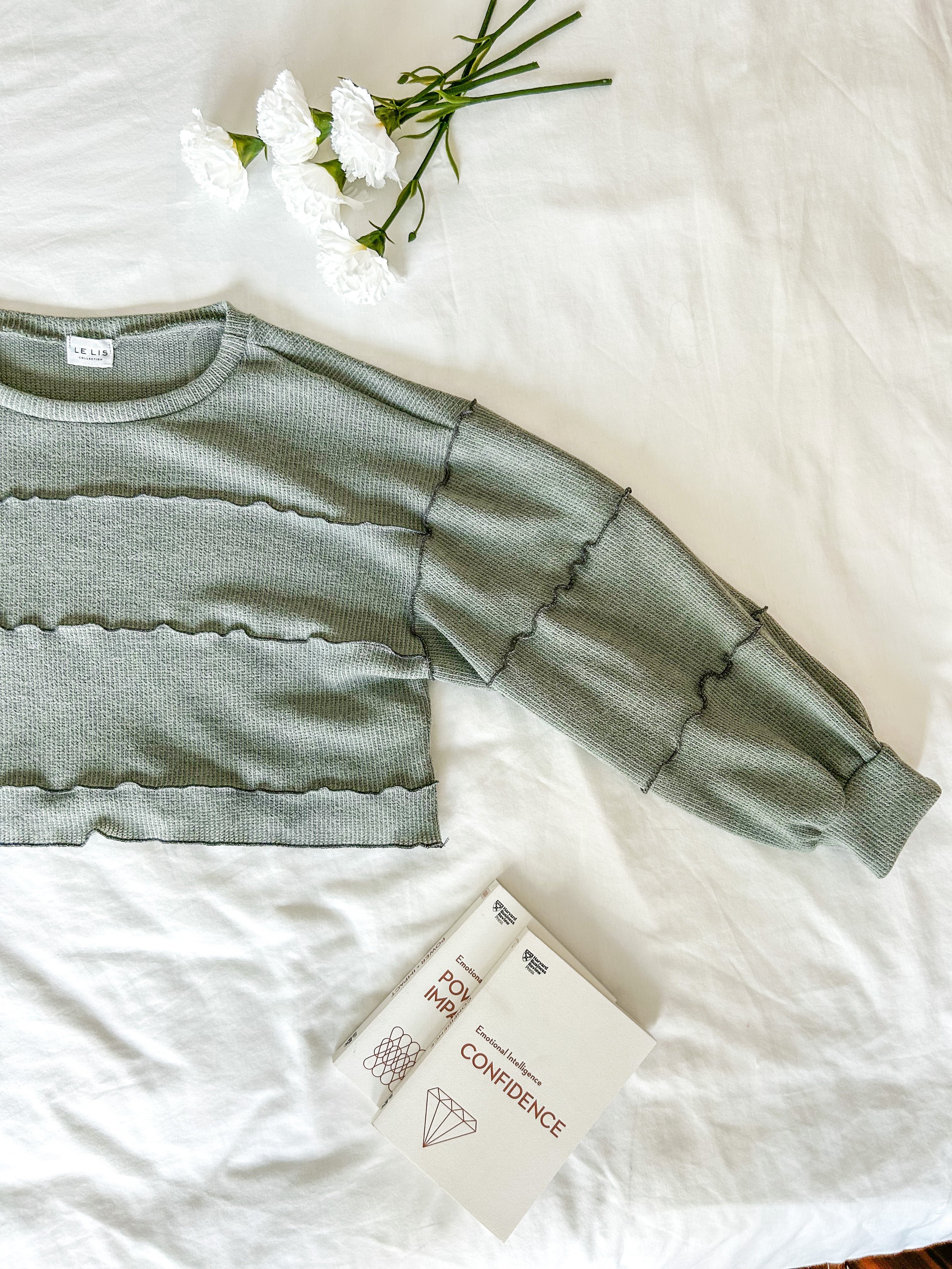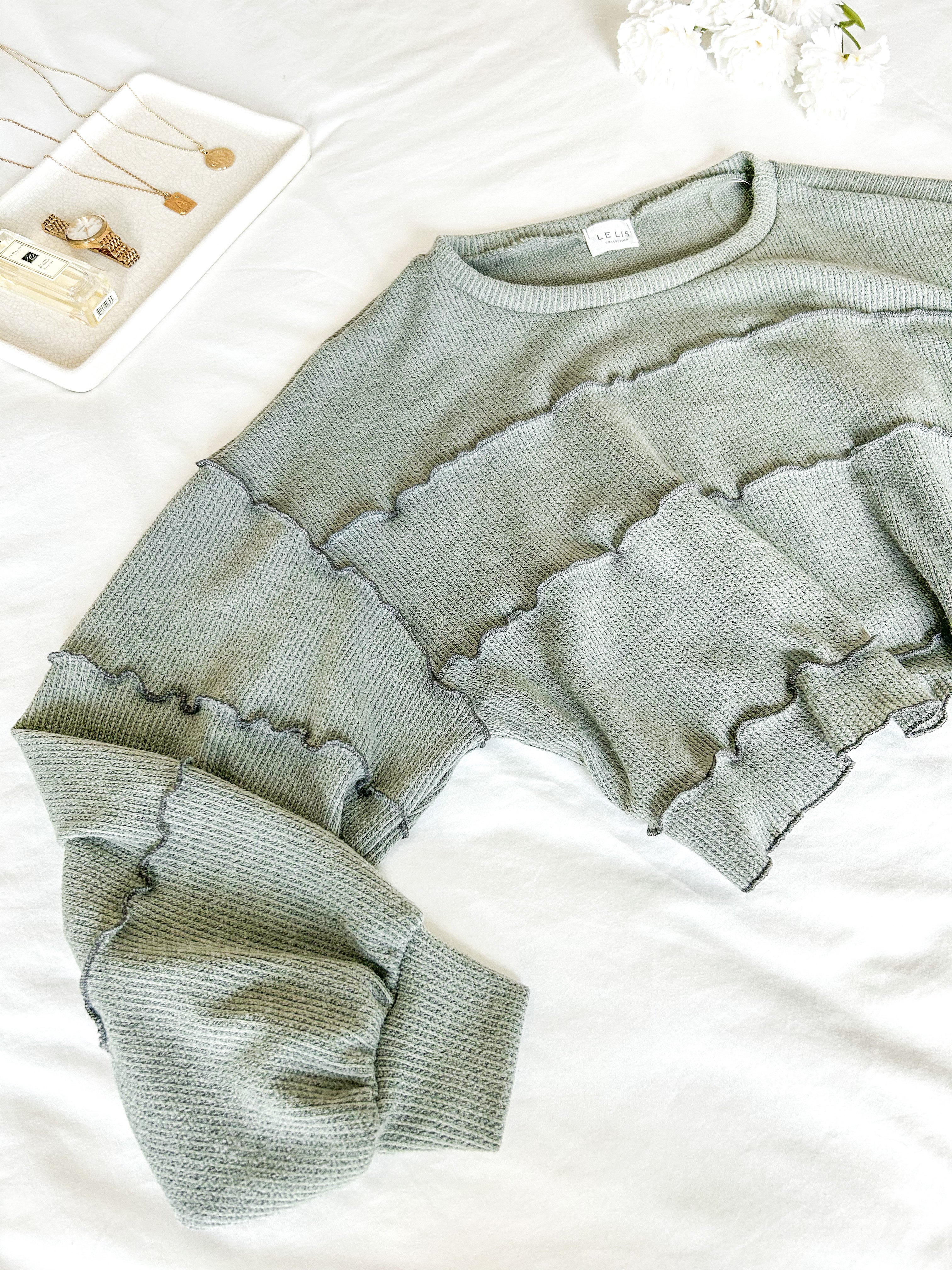 Long-sleeve swiggle texturedetail sweater. True to size!