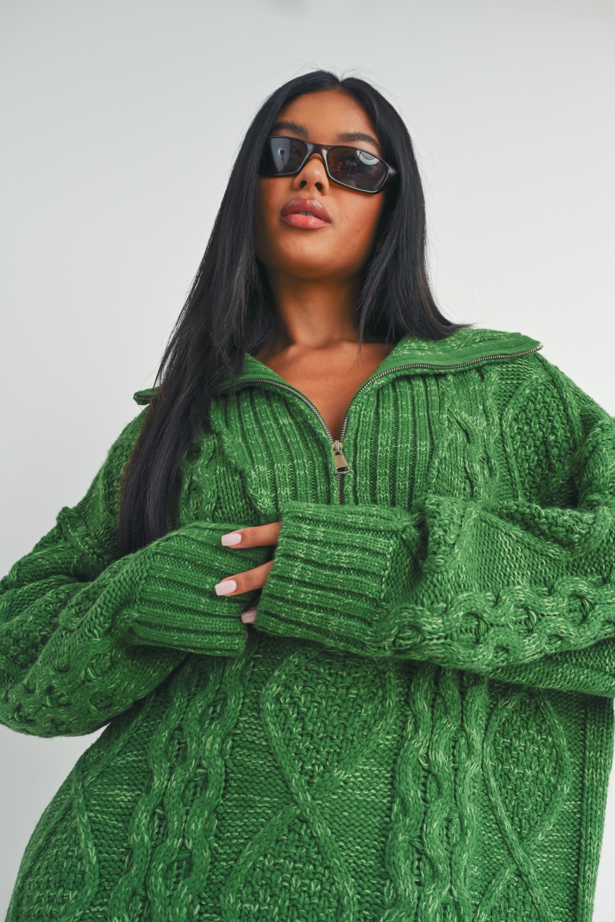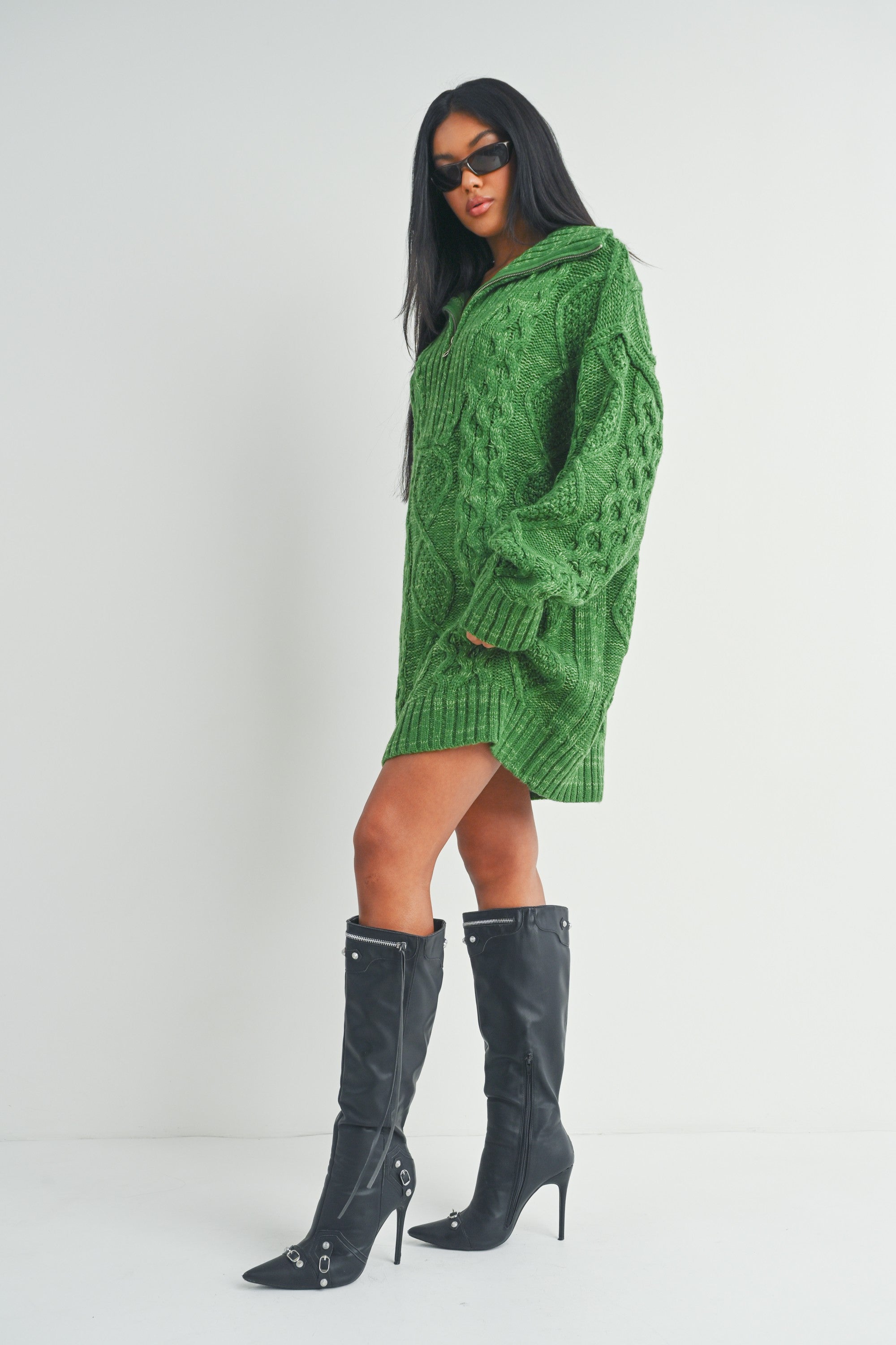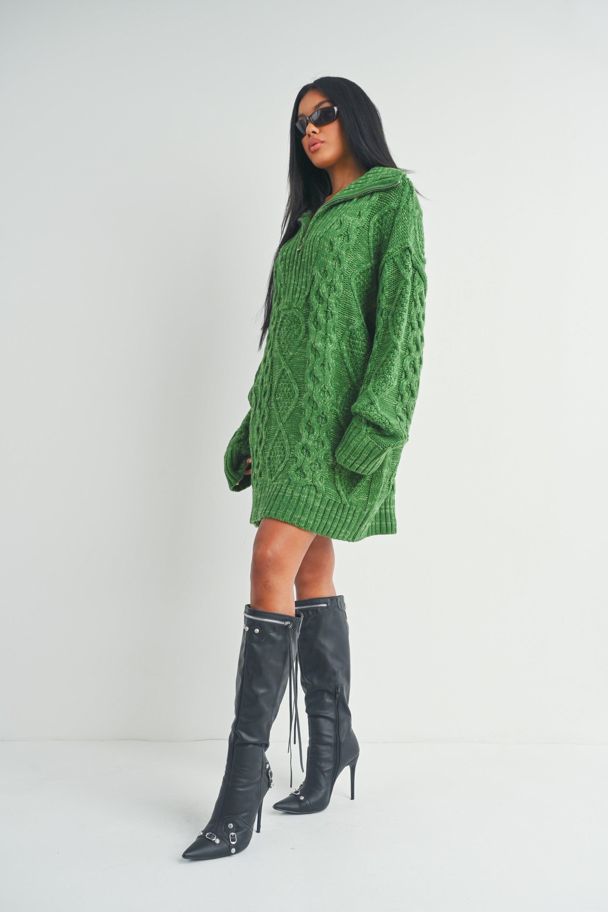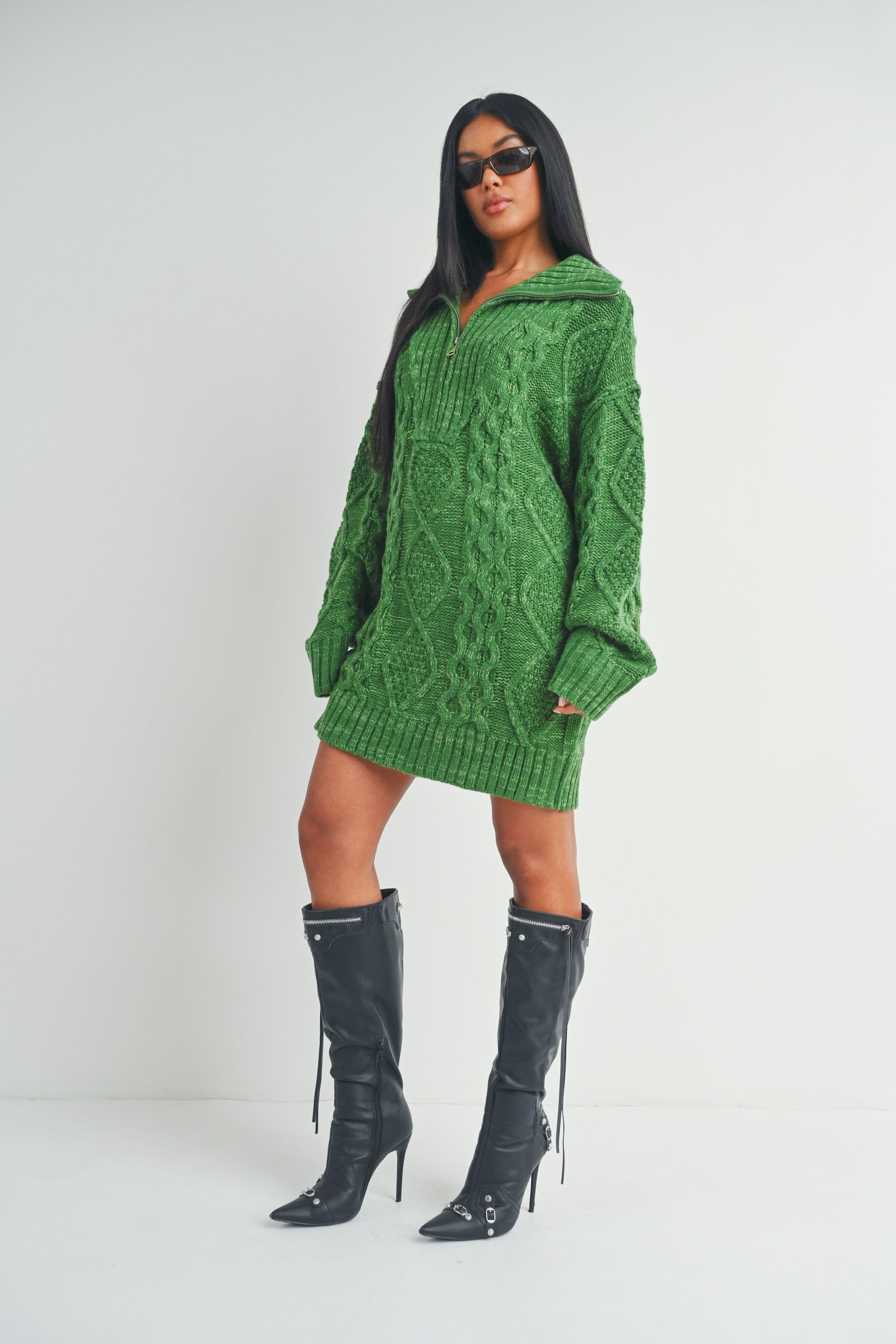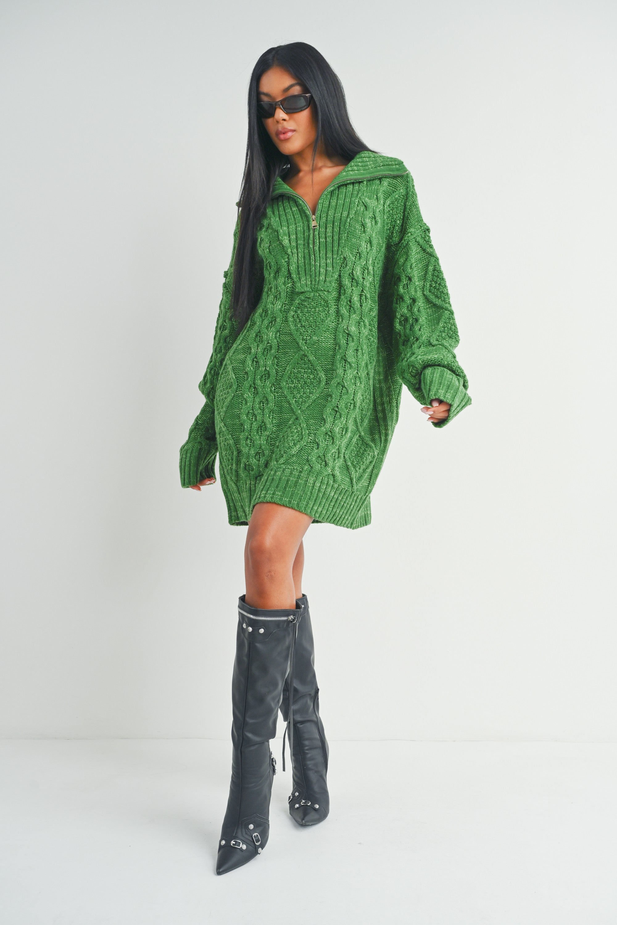 This long sleeve dress is constructed from a knit fabric, featuring a quarter zip closure and intricate braiding.